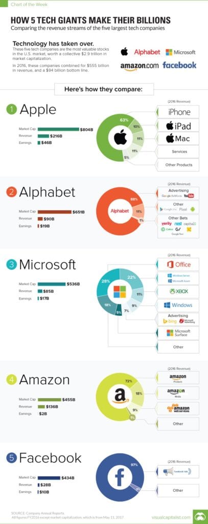 - Analysis of revenue diversification for tech giants.